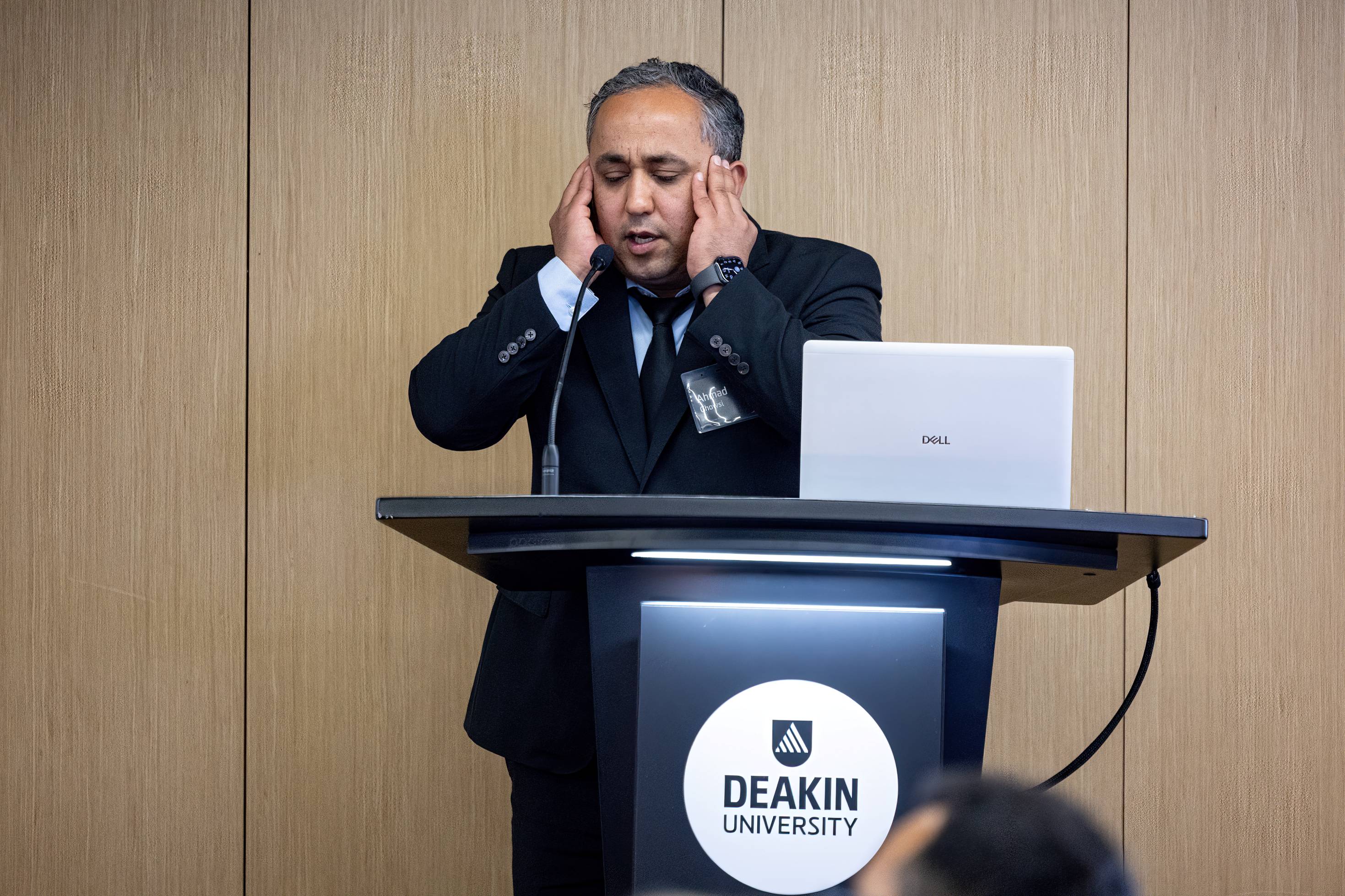 Professor Simon Tormey, Executive Dean Arts and Education, delivered a welcome on behalf of Deakin University, who spoke about the meaning of social cohesion in a diverse society: “Social cohesion is not social homogeneity. It asks more of us than thinking alike, worshipping alike, or looking alike.” Simon described the Iftar dinner as “an act of genuine encounter, an opportunity to be present with one another, share something meaningful, and be reminded of all that we hold in common.” He also stressed that cultural safety is not simply a courtesy but a fundamental condition of belonging.